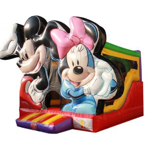 The Mickey & Minnie Combo Unit is perfect for your next themed event. This beautiful Combo is designed for the Disney, Mickey & Minnie Mouse lovers at heart. It has all the elements of an inflatable combo, with bouncing, climbing & sliding inside.