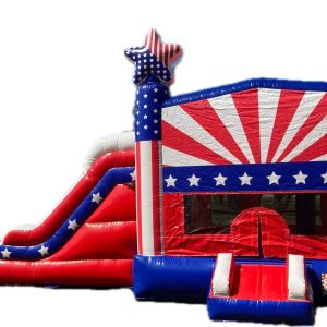 All of America will love this combo, Red White & Blue with stars on top can’t be beat! Jump, Climb, Slide & Shoot Hoops Inside! We have the best bounce houses, water slides, carnival games, interactive games, concessions, tables and chairs, dunk tanks, obstacle courses, mechanical bull, giant slides, and carnival rides for rent in …